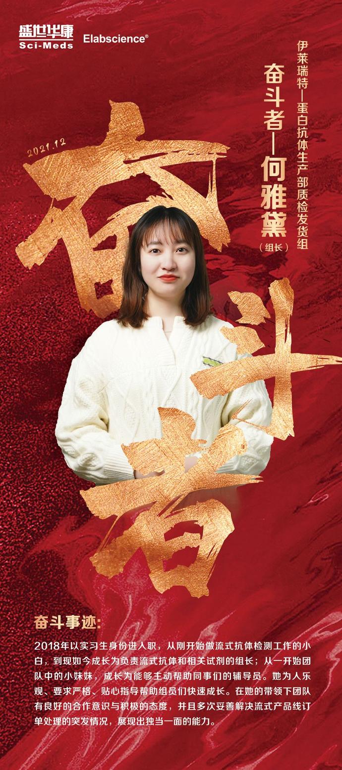 2018年以实习生身份进入公司,做流式抗体的检测工作,从刚开始的流式小白,到负责流式抗体和相关事迹的质检、订单处理和发货。从开始的团队中最小的小妹妹,成长为帮助同事们适应新环境的辅导员。总是那么乐观,严格要求组员,又给予足够贴心的指导,用自己行动做示范,帮助组员们快速成长。