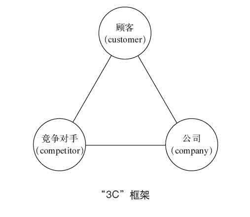 “3C”取自于顾客(customer)、竞争对手(competitor)、公司(company)这三个要素的英文首字母。该框架是“通过分析自己公司现在所处的经营环境,灵活地开发经营课题、制定战略等”,并非单纯用于明确自己公司的情况。