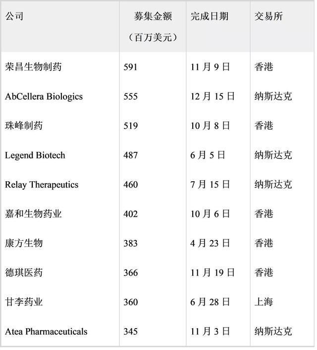 并且,中国这股发展势头一直延续到 2021 年。2021 年的前四个月,中国在全球十大生物技术 IPO 中占据了 3 席。两家中国公司——太仓的康乃德生物制药公司和苏州的细胞治疗公司亘喜生物,在此期间进入了纳斯达克生物制药 IPO 的前 10 名(表 2)。