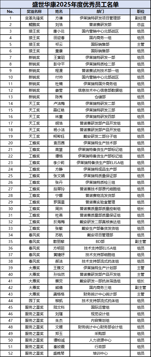 ——盛世华康2025年度优秀员工名单公布